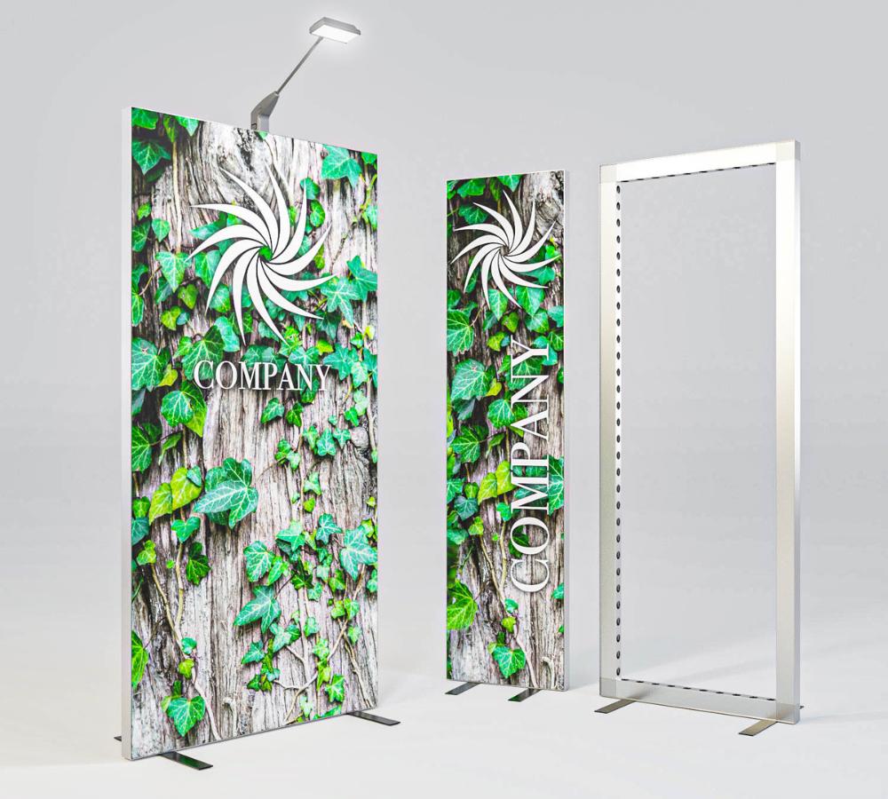 Das System ist modular aufgebaut und kann werkzeuglos montiert werden. Durch die hohe Stabilität können auch größere Präsentationswände gebaut werden. Im Vordergrund steht nur Ihre Werbebotschaft.