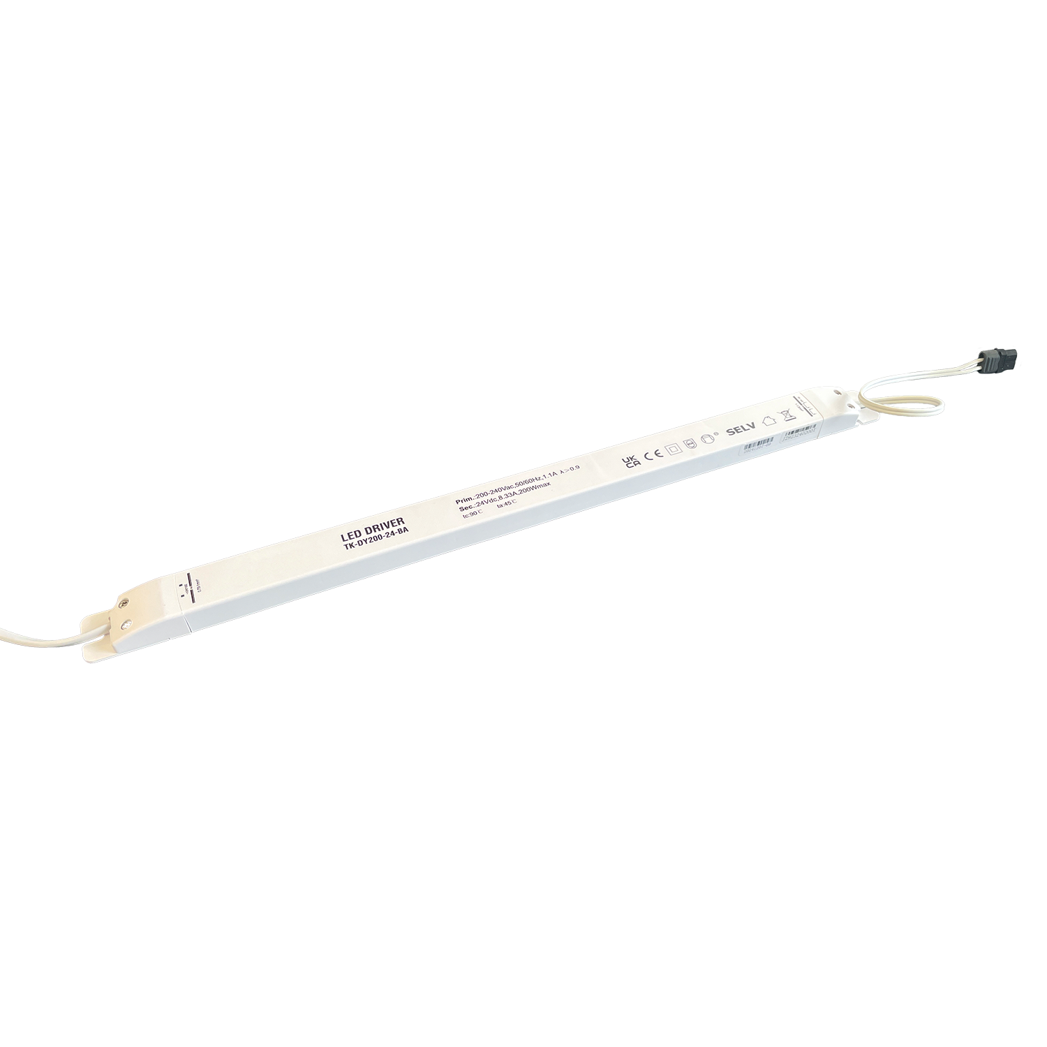 Mit einer Primärspannung von 200–240 V AC, 50/60 Hz, 1,1 A und einer Sekundärleistung von 24 V DC, 8,33 A liefert er eine maximale Leistung von 200 W. Damit ist er stark genug, um selbst große LED-Installationen zuverlässig zu betreiben.
