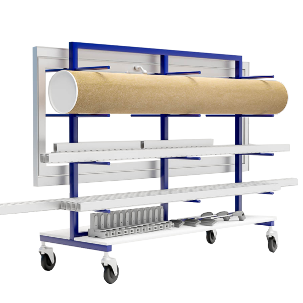 Dank der vormontierten Lieferung ist der Ständer sofort einsatzbereit. Mit zwei Lenkrollen und zwei Bockrollen (jeweils 40 mm breit) aus hochwertigem thermoplastischem Elastomer (TPE) lässt er sich leicht und sicher bewegen – auch bei hoher Beladung.